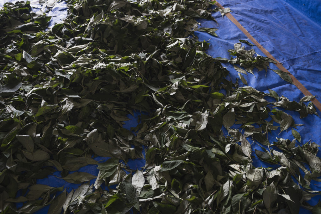 甘茶の木は比較的冷涼な気候を好む。ここ数年は、九戸村も全国的な高温と多日照により、他農産物と同様に葉焼けなどが発生していた。取材日となる8月22日まで美しい葉が保たれるか、当日までハラハラしながらの遠征となった。